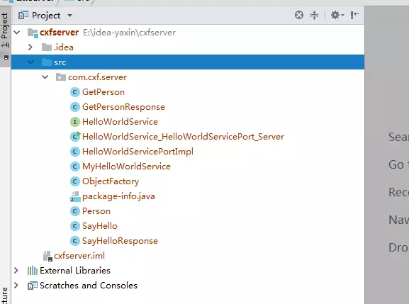 手动编写服务端代码开发分为四步: 1.引入cxf相关jar包 2.新增服务接口 3.新增服务接口实现 4.新增发布服务类