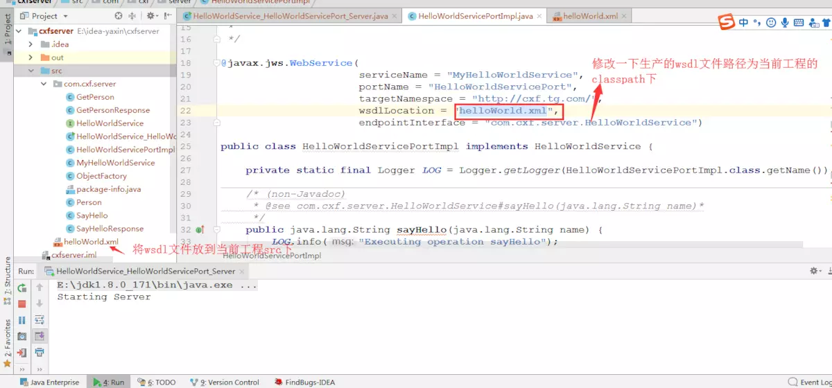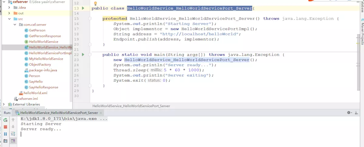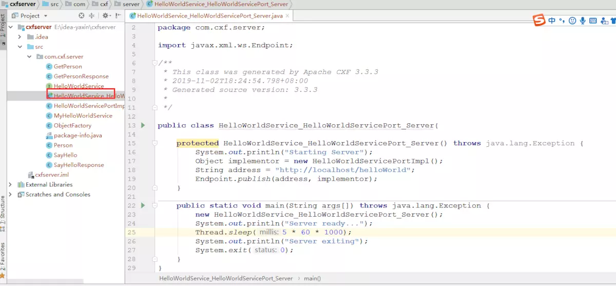 直接启动HelloWorldService_HelloWorldServicePort_Server类